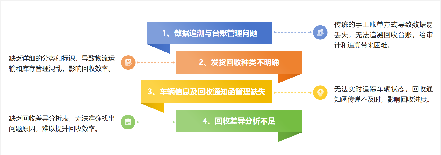 • 缺乏發(fā)貨回收種類,庫存管理混亂