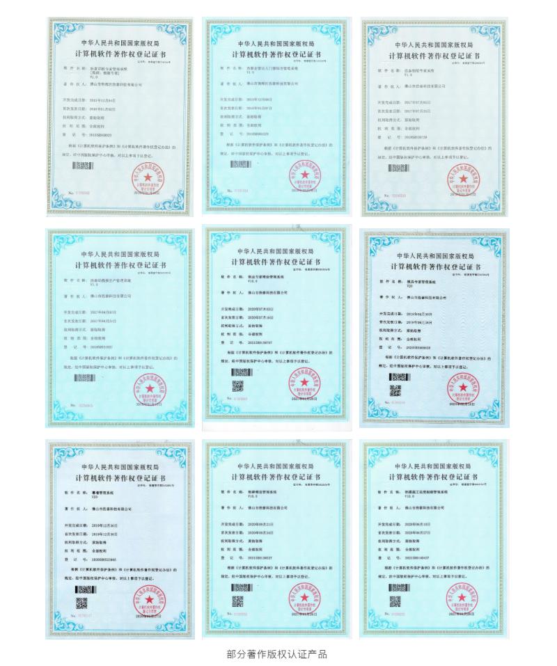 2014年起,浩泰科技以鋁型材行業為載體,衍生出更多自主研發的鋁材ERP生產管理系統軟件開發,并陸續提交產品版權登記,其中包括浩泰鋁板專家管理系統(簡稱:鋁板專家)V1.0、浩泰企管達人門窗綜合管理系統V1.0、浩泰鋁箔專家系統V1.0、浩泰鋁模板生產管理系統V1.0、模具專家管理系統V20、幕墻管理系統V20、鋁棒鑄造管理系統V10.0、鋁模施工進度跟蹤管理系統V10.0、鋁業專家噴涂管理系統V10.0等多項產品的版權登記。截至目前,浩泰已辦理版權登記超40件,為企業發展注入強大的版權力量。